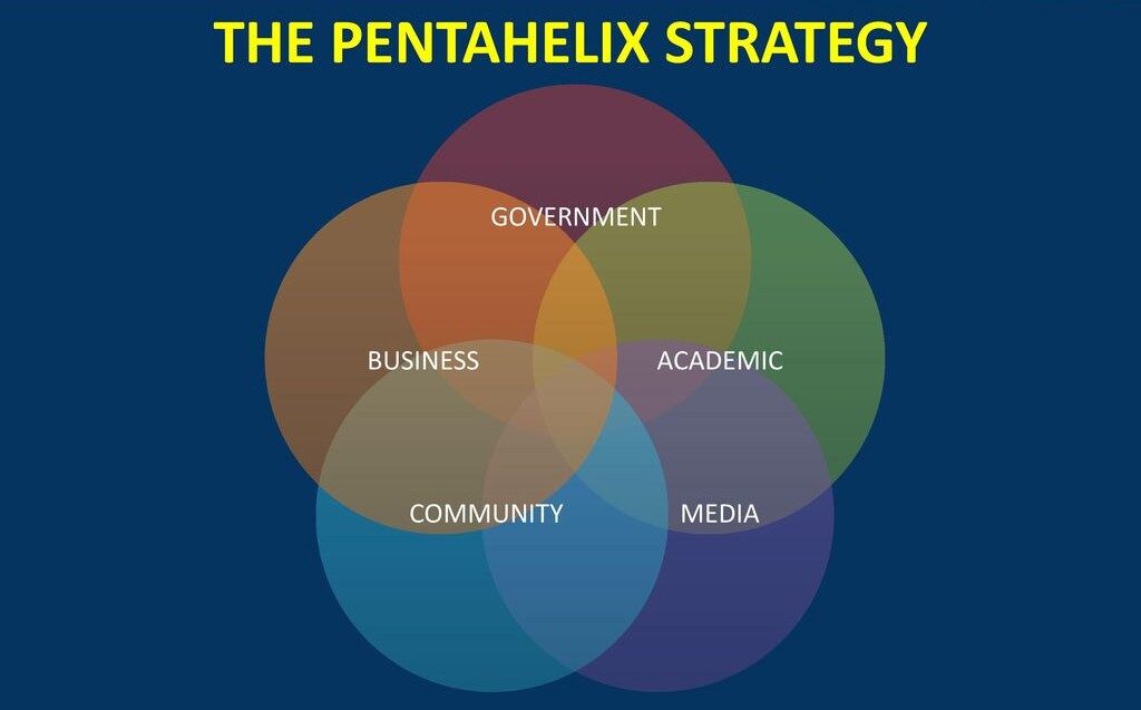 Penanggulangan bencana sangat membutuhkan suatu inovasi yang terwujud dari upaya sinergi dan kolaborasi. Inovasi tersebut end to end-nya adalah ketangguhan masyarakat. Kunci dari pentahelix ini adalah sinergi dan kolaborasi antar helix melalui peran-peran yang dimilikinya.
