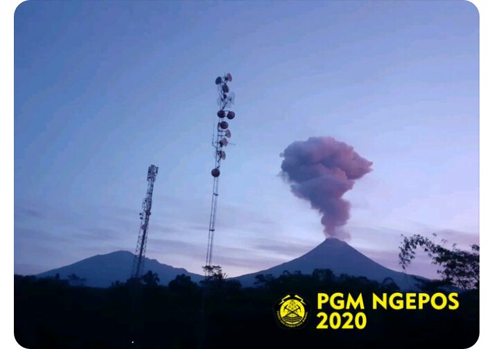 Terjadi erupsi di Gunung Merapi tanggal 13 Februari 2020 pukul 05:16 WIB. Erupsi terekam di seismogram dengan amplitudo 75 mm dan durasi 150 detik. Teramati tinggi kolom erupsi ±2.000 meter. Arah angin ke Barat Laut.