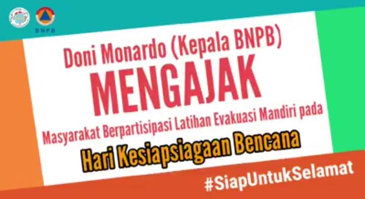 Kepala BNPB, Doni Monardo mengajak masyarakat berpartisipasi Latihan Evakuasi Mandiri pada Hari Kesiapsiagaan Bencana 26 April Tahun 2020.#SiapUntukSelamat
