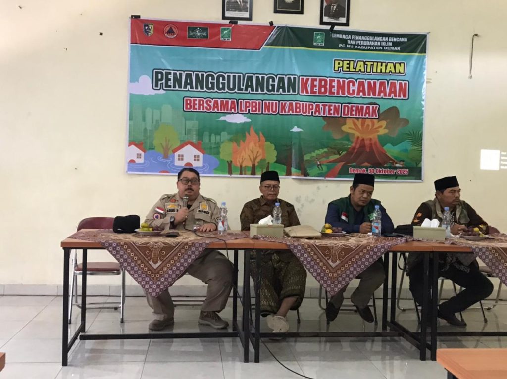 Demak, Kamis 30 Oktober 2025 — Badan Penanggulangan Bencana Daerah (BPBD) Kabupaten Demak menjalin kolaborasi dengan Lembaga Penanggulangan Bencana dan Perubahan Iklim Nahdlatul Ulama (LPBI NU) Demak dalam penyelenggaraan Pelatihan Kebencanaan Dasar bagi para relawan kemanusiaan.