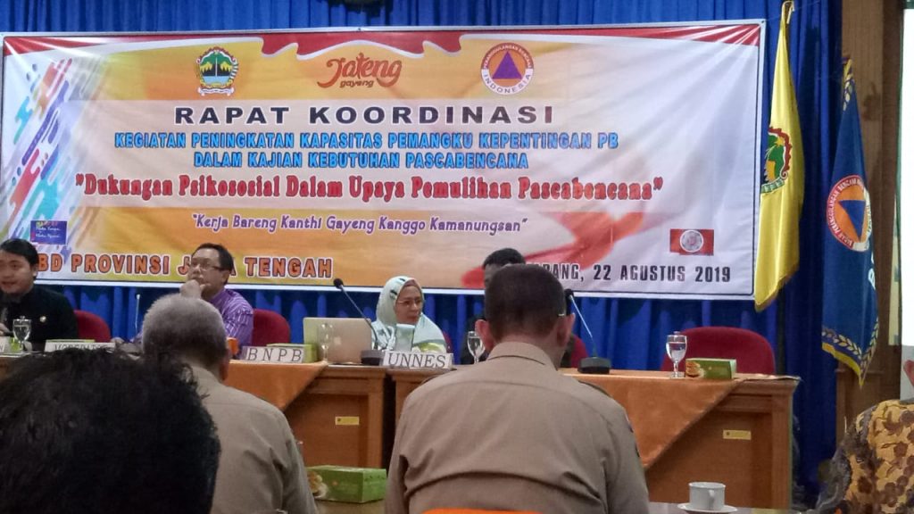 BPBD Provinsi Jawa Tengah menyelenggarakan Rapat Koordinasi Kegaiatan Peningkatan Kapasitas Pemangku Kepentingan Penanggulangan Bencana ( PB ) Dalam Kajian Kebutuhan PascaBencana “Dukungan Psikososial Dalam Upaya…